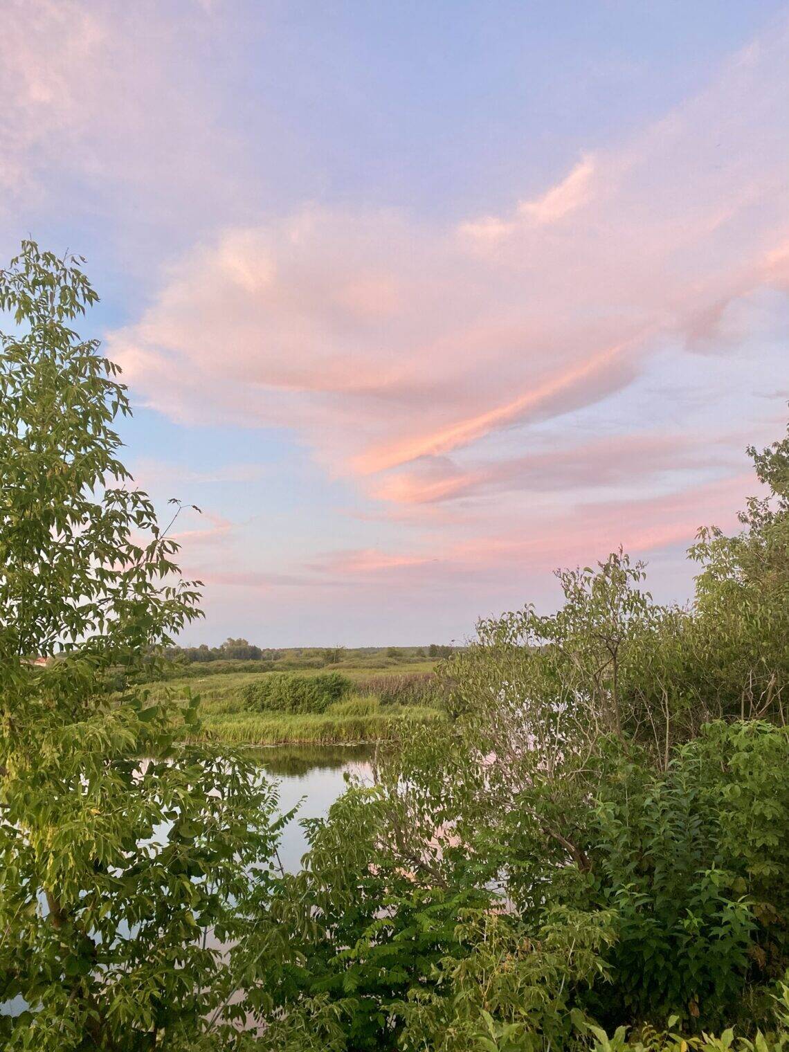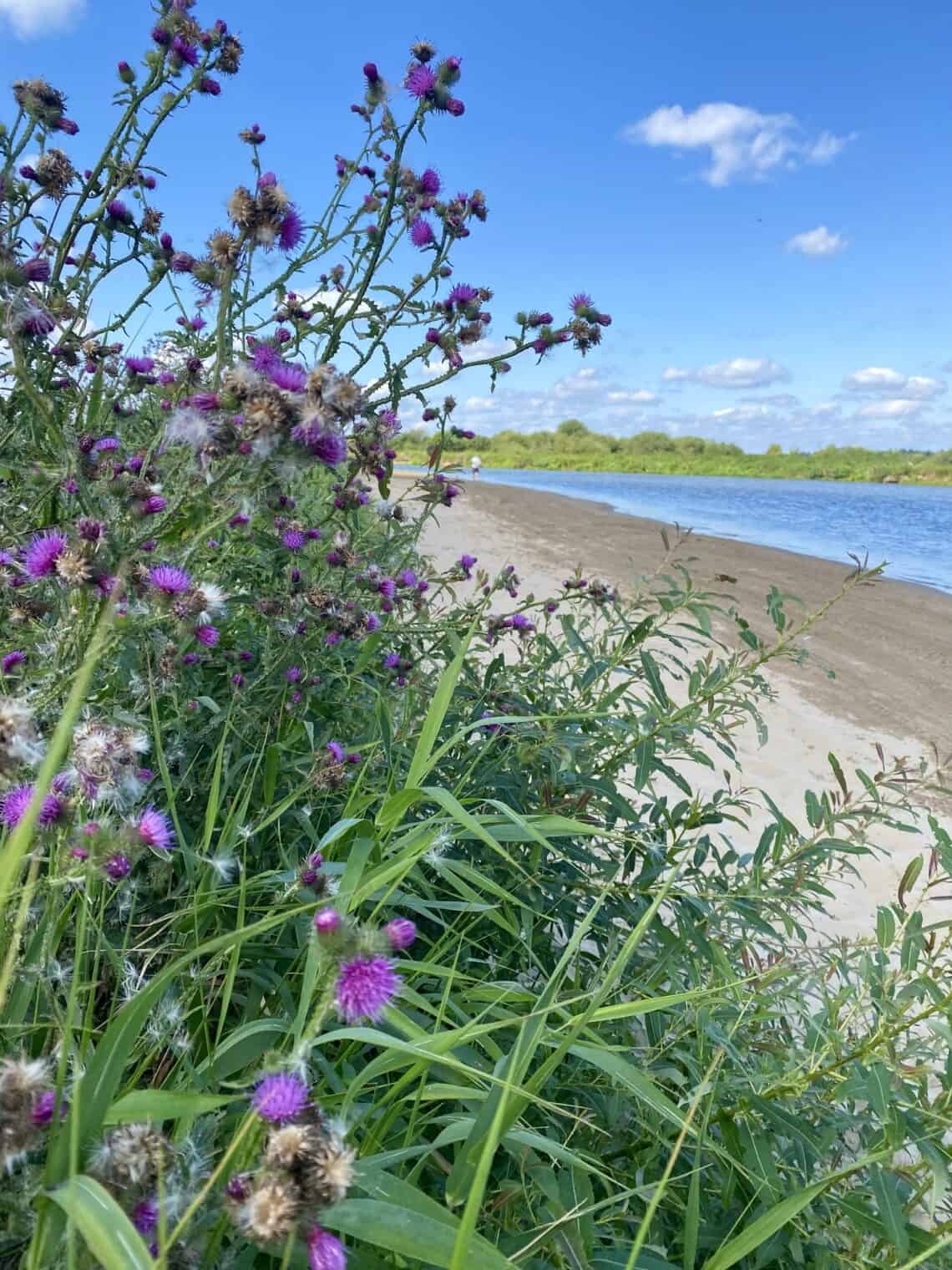 Bug zachwyca i uwodzi. Kiedy dojeżdżamy na dziką plażę, pomiędzy nadrzecznymi zaroślami mienią się jego szafirowe, spokojne wody, jakby mrugało do nas oko rzeki. Na mokrym piachu odznaczyły się racice łosia, delikatne podeszwy kaczych płetw, szybkie łapki Tofika i nasze stopy. Pod wieczór drobne fale Bugu perlą się w zakolu rzeki, oświetlane zachodnim słońcem. Wystarczy usiąść, patrzeć i chłonąć wielkie piękno, które wydarza się na naszych oczach. Rzeka przyciąga.Zanurzenie w niej przywraca kontakt z życiem, z nurtem, z ciałem, zawsze na nowo.Zacieśnia więź z naturą.Woda leczy i niesie ukojenie.Człowiek zawsze będzie wracał do wody, nad wodę, żeby odpocząć, ochłodzić się, ostudzić głowę i emocje. Podchodzę do rzeki z wielkim szacunkiem.…